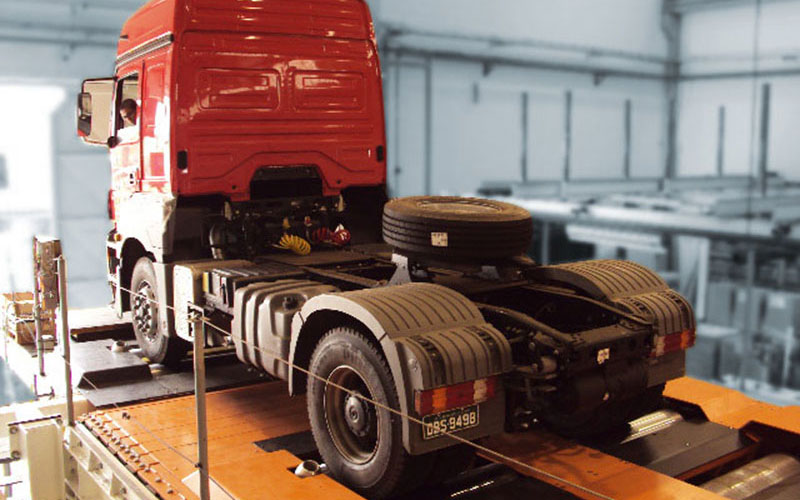The roll/brake/ABS test stand x-road truck is designed for tests of heavy commercial vehicles (maximum axle load 10 t) with up to 4 driven axles under road-like conditions. Amongst others combine these tests pure roll tests, the speedometer test, the performance measurement and the combined roll/brake/ABS tests, which are carried out in short cycle time and comply with the highest quality requirements.