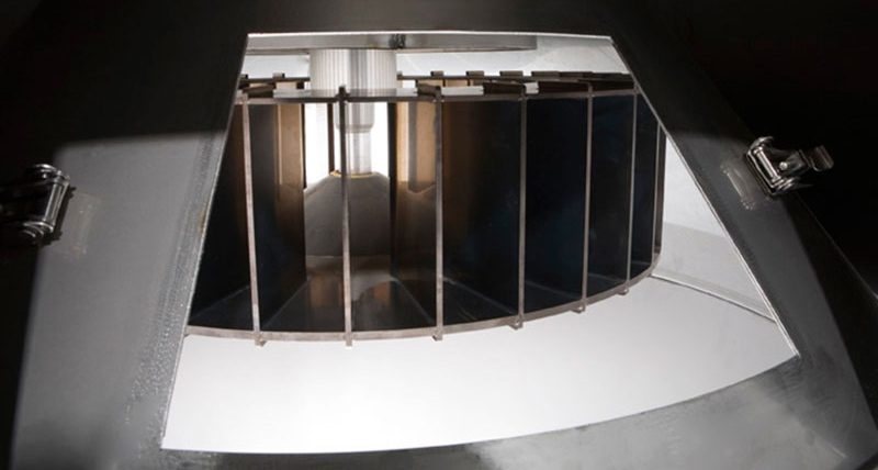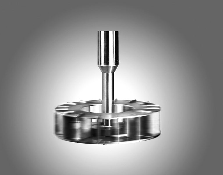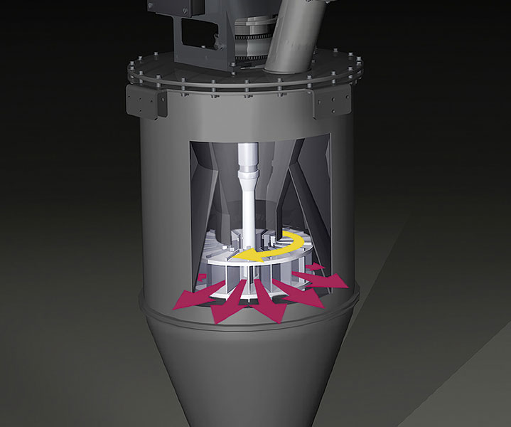 The bulk solids hit a rotating measuring wheel. Due to the centrifugal force, the bulk solid particles on the vane are moved outwards. On the measuring wheel – due to the acceleration in the direction of the circumference – the bulk solids are subject to the Coriolis force. This can be recorded as a measurable variable which is proportional to the gravimetric feed rate, even with changing bulk density or different grain size.